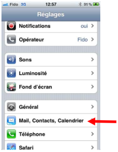 2. Appuyez sur le bouton Mail, Contacts, Calendrier. | |