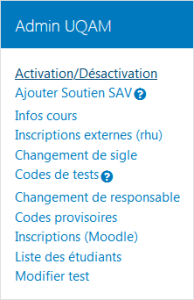 - Repérer le bloc Admin UQAM et cliquer dans ce bloc sur Activation/Désactivation.