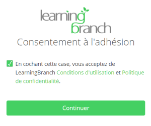 Si c’est la première fois que vous ouvrez une section dans Learningbranch, vous devez accepter les conditions d’utilisation en cochant la case à gauche.