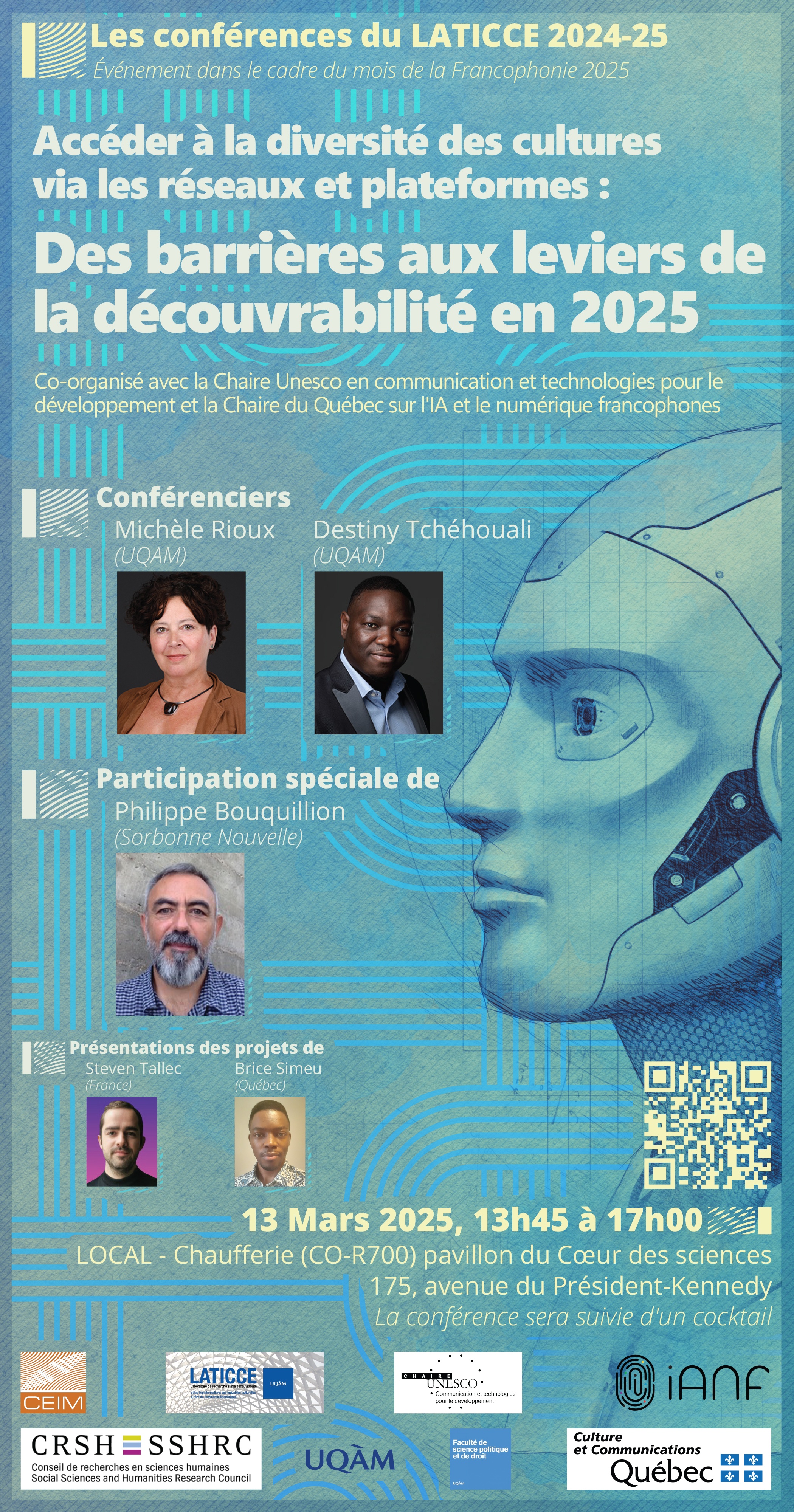 Organisée par le CEIM-LATICCE (UQAM) en collaboration avec l’IEIM et la Chaire de recherche du Québec sur l’intelligence artificielle et le numérique francophones (IANF) dans le cadre du mois de la Francophonie.