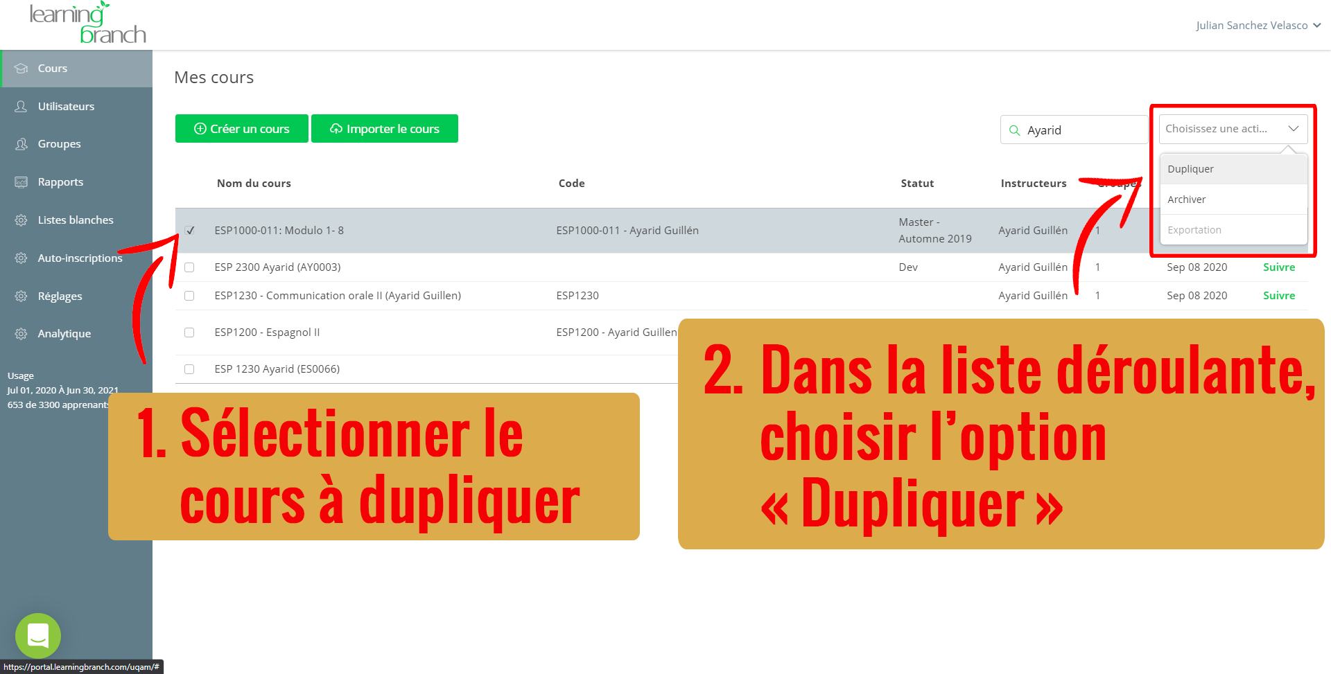 Pour créer une copie d'un cours, vous devez suivre les étapes suivantes :