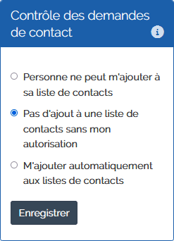 Sélectionner l'option de Contrôle des demandes de contact et cliquer sur le bouton Enregistrer.