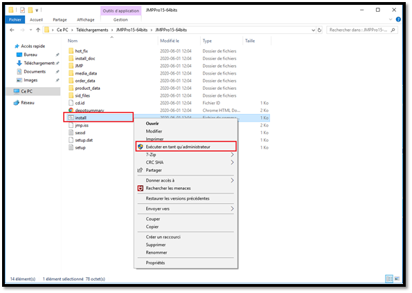 1. Décompresser le dossier téléchargé: JMPPro16_Windows.zip