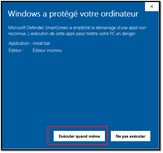 2. Cliquer avec le bouton droit de la souris sur fichier install.bat .