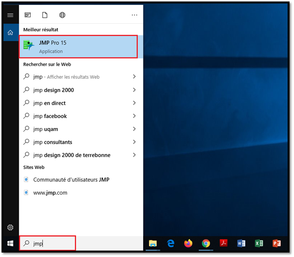 7. À partir du Menu démarrer, exécuter le logiciel JMP Pro 16.