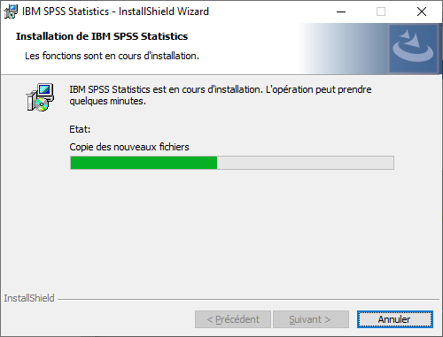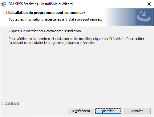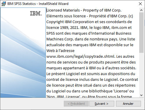 2. À l'écran IBM SPSS Statistics - InstallShield Wizard, appuyer sur le bouton Suivant
