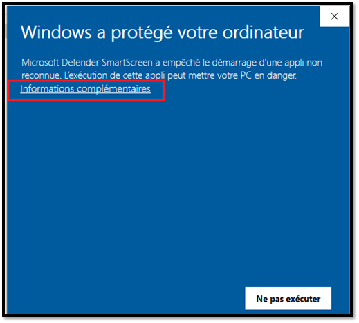 2. Si la fenêtre ci-contre apparaîtra. Cliquer sur informations complémentaires.