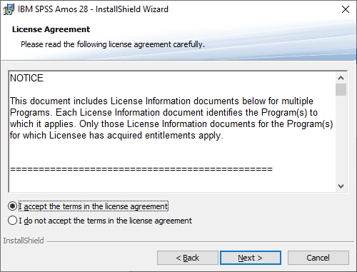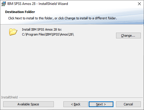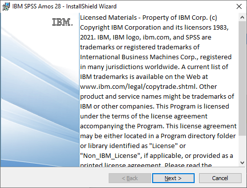 4. À l'écran IBM SPSS Amos 28 - InstallShield Wizard, appuyer sur le bouton Next.