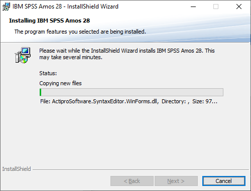 8. L'installation de SPSS Amos est maintenant en cours et le processus devrait durer entre 4 et 8 minutes.