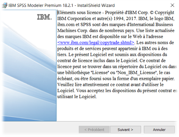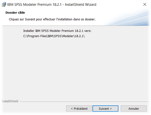 3. À l'écran IBM SPSS Modeler - InstallShield Wizard, appuyer sur le bouton Suivant. | |