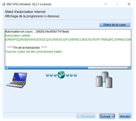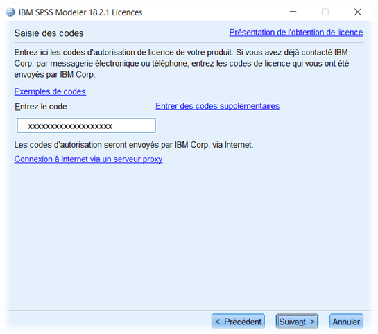 15. Entrer le code licence. Cliquer ici pour récupérer le code, puis cliquer sur Suivant.