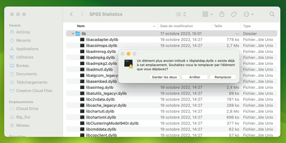 Guide d'aide à la correction des erreurs du programme SPSS 29 sous macOS Sonoma. Le téléchargement est disponible sur https://logitheque.uqam.ca/logiciel/spss29_correctif_macos_sonoma/ Si vous éprouvez des difficultés lors de l'installation, et vous êtes