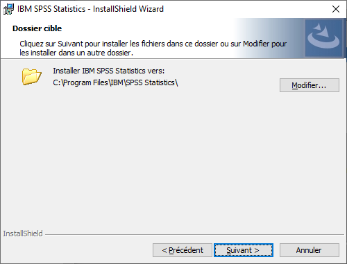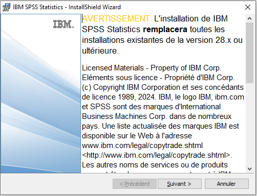 2. À l'écran IBM SPSS Statistics - InstallShield Wizard, appuyer sur le bouton Suivant
