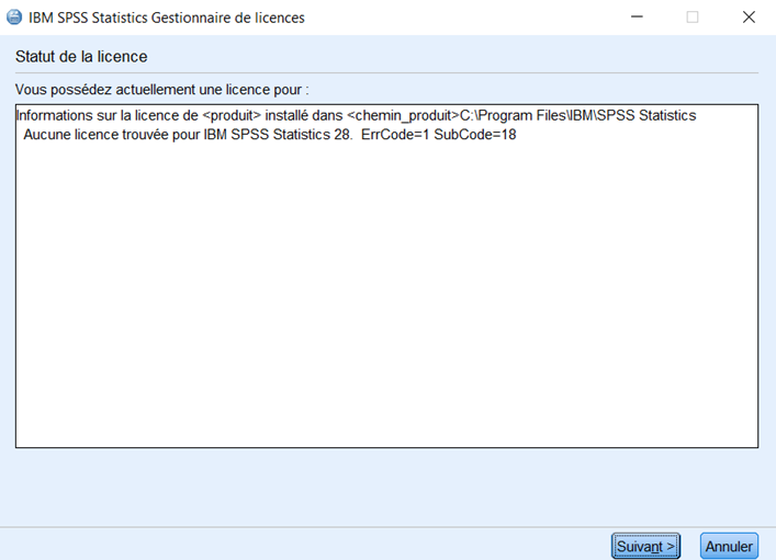 Guide de renouvellement du programme SPSS 28 sous Windows Si vous éprouvez des difficultés lors du renouvellement de la licence, et vous êtes