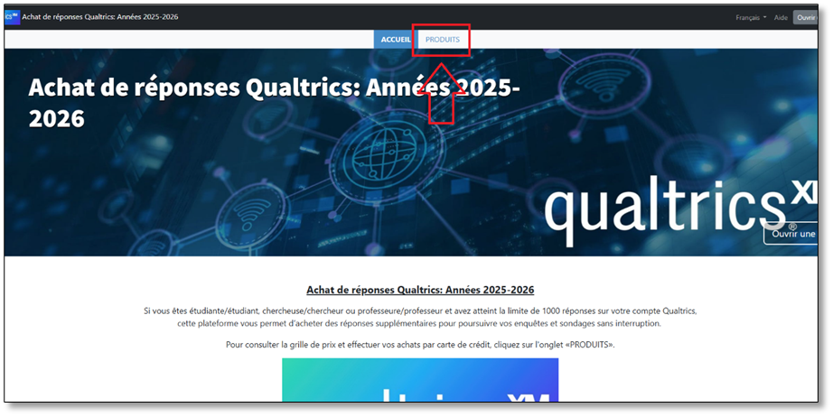 Ce guide est destiné aux utilisatrices et utilisateurs qui ont atteint la limite de 1000 réponses sur leur compte Qualtrics et qui désirent acheter des réponses supplémentaires pour poursuivre leurs enquêtes et sondages sans interruption, en payant par carte de crédit.