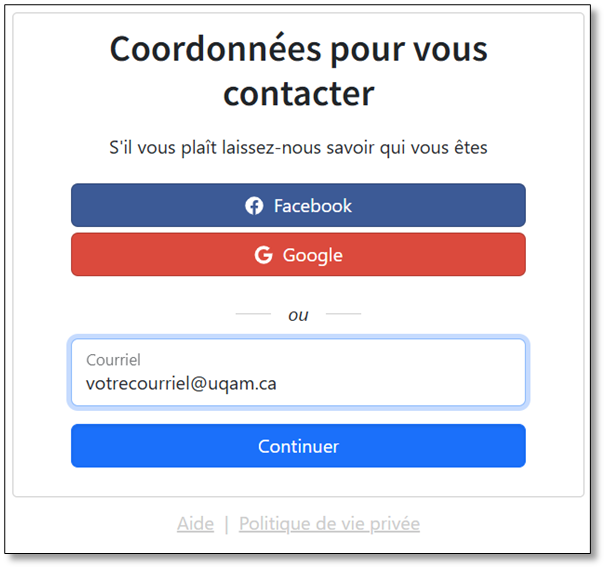 Entrez l’adresse courriel à laquelle sera envoyée votre reçu et cliquez sur Continuer.
