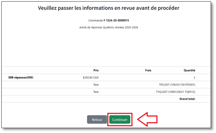 Passez les informations en revue une dernière fois avant de procéder au paiement, puis cliquez sur Continuer.