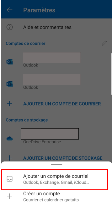 Si vous avez déjà l'application Microsoft Outlook configurée sur votre appareil Android: