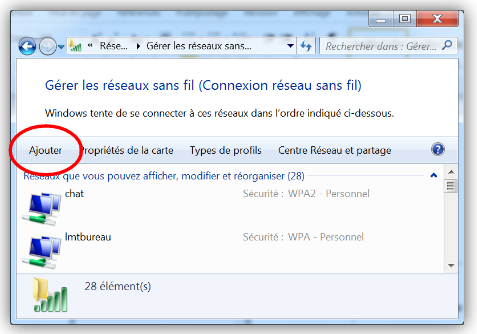 Si le problème persiste, rendez-vous à l'étape 4. Dans Gérer les réseaux sans fil, sélectionnez Visiteurs UQAM et cliquez sur supprimer. Puis recommencez la configuration.