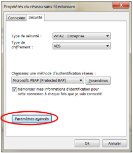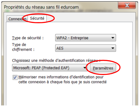 8. Dans l'onglet Sécurité, cliquez sur Paramètres.