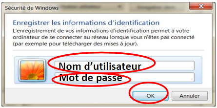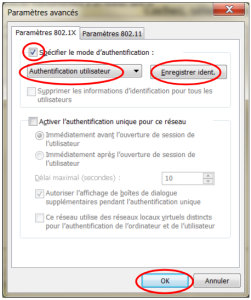 • Cliquez ensuite sur Enregistrer ident. et sur OK.