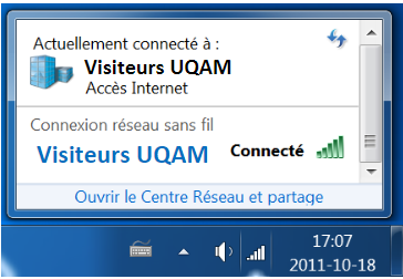 15. Vous êtes maintenant connecté au réseau sans fil Visiteurs UQAM.