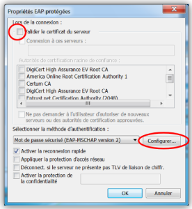 9. Décochez la case Valider le certificat du serveur. Puis, cliquez sur Configurer.