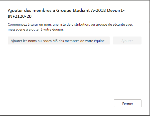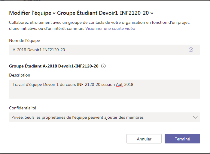 Exemple de création d'équipe dans Teams