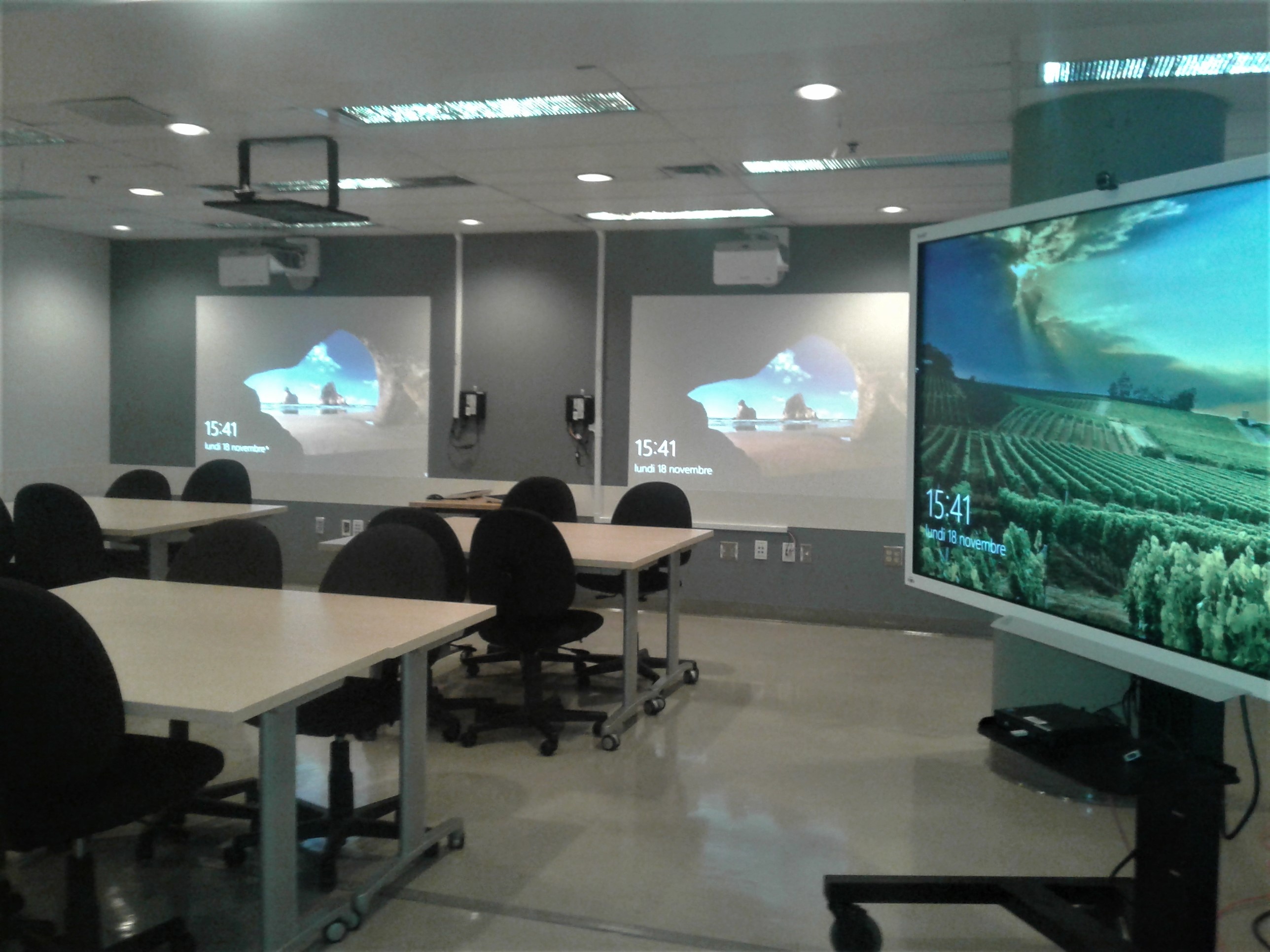 N-2670 | Manipulation de tableaux numériques interactifs | Comprenant 5 ordinateurs Windows 10, Intel Core i7 HP EliteDesktop, Une caméra Web, un micro-cravate, deux micros plafond, 4 tableaux interactifs (Smart Lite Rays) dont un mobile et un tableau interactif (ActivBoard Promethean 387Pro) |