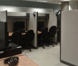 N-2625 | Écoute et enregistrement avec insonorisation | Comprenant 18 ordinateurs Windows 10, 18 casques d'écoute avec microphone intégré. Chaque ordinateur est entouré de cloisonnette acoustique. |
