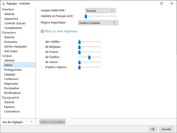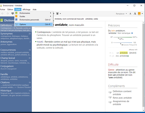 Ouvrir Antidote 10, cliquer sur "Outils" puis "Options"