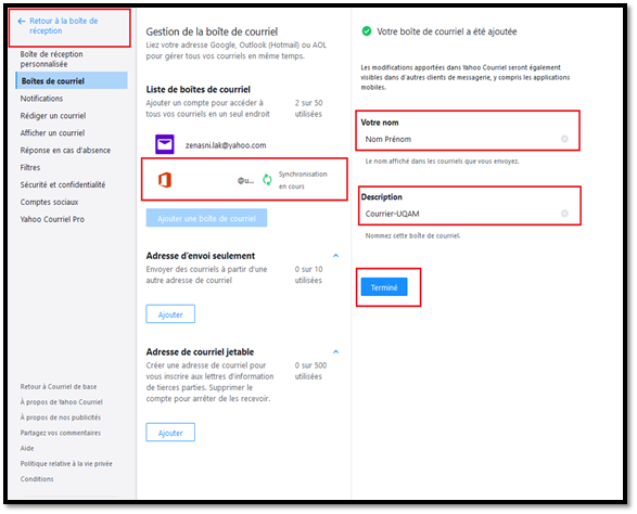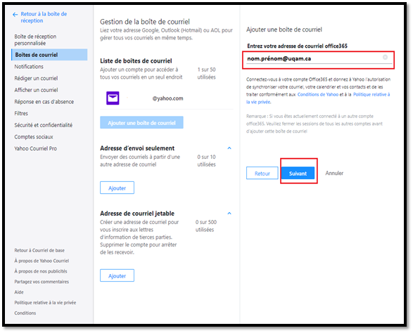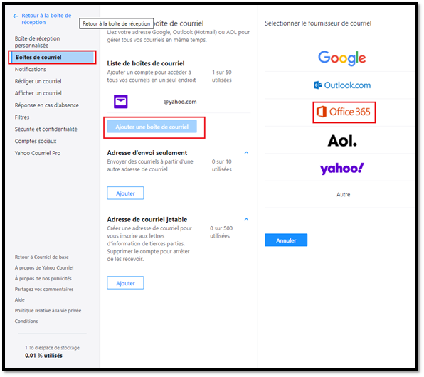 Importation Courriel Étudiant O365 à partir de Yahoo