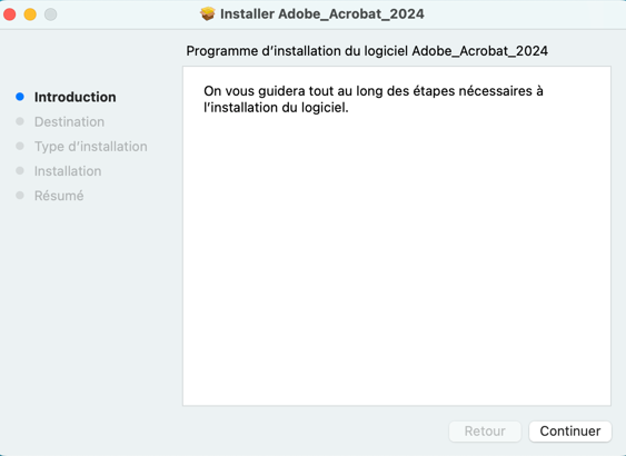 Guide d'aide à l'installation du programme Acrobat DC sous macOS.Le téléchargement est disponible sur https://logitheque.uqam.ca/logiciel/adobedc/ Cette licence n’est pas permise pour le personnel métier et service! Si vous éprouvez des difficultés lors de l'installation, et vous êtes membre du corps enseignant ou du personnels de l'UQAM, veuillez remplir cette requête. | |