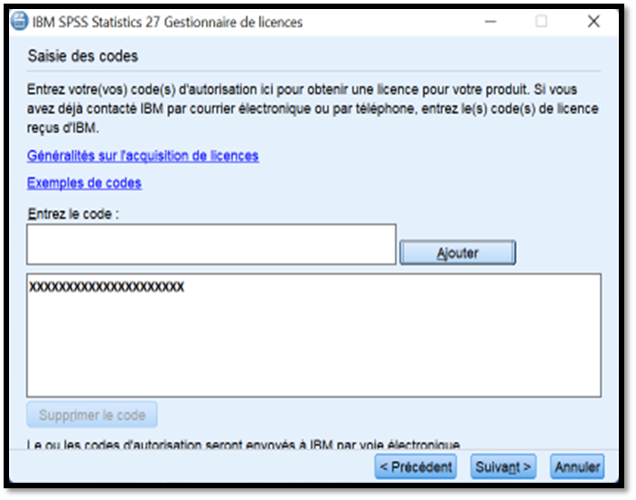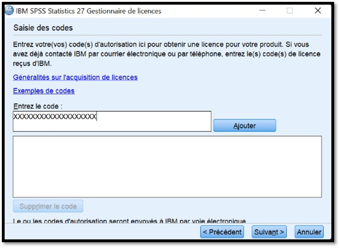 10. Entrer le code de licence. Cliquer ici pour récupérer le code. 11. Puis appuyer sur le bouton Ajouter. | |