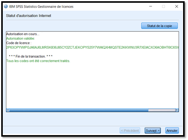 6. Noter qu'à cette étape (étape de validation), il y a une possibilité que le programme SPSS exige que les autres applications ouvertes soient fermées. 7. Si c'est le cas, enregistrer vos documents avant de les fermer | |