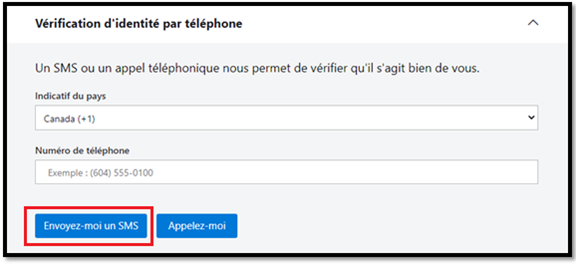 8. Saisir votre numéro de téléphone puis cliquer Envoyer-moi un SMS