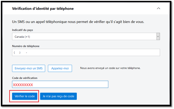 9. Saisir le code que vous avez reçu sur votre téléphone, puis cliquer sur Valider le code