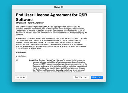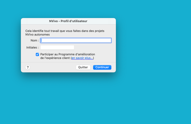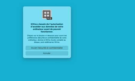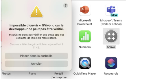 Guide d'aide à l'installation du programme Nvivo sous Macintosh. Le téléchargement est disponible sur https://logitheque.uqam.ca/logiciel/nvivo15/ Nvivo est disponible seulement pour les étudiants du 2e et 3e cycles et le corps enseignant. Le logiciel n'est pas compatible avec un mac menu d'une puce Apple M2 Pro. Aussi macOS Ventura pose certains problèmes. Si vous éprouvez des difficultés lors de l'installation, et vous êtes