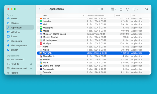 4- Aller dans Applications, puis cliquer sur Nvivo 15.app. | |