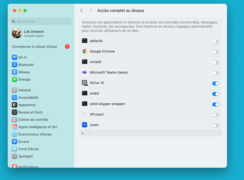 6- Glisser le bouton Nvivo vers la droite pour l'autoriser à avoir un accès complet au disque. | |