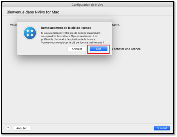 Guide de renouvellement du programme Nvivo 12 sous Macintosh Le renouvellement de la licence est disponible sur https://logitheque.uqam.ca/logiciel/nvivo12-6-renouvellement-de-licence-2022-2023/ Nvivo est disponible seulement pour les étudiants du 2e et 3e cycles et le corps enseignant. Le logiciel n'est pas compatible avec un mac menu d'une puce Apple M2 Pro. Aussi macOS Ventura pose certains problèmes. Si vous éprouvez des difficultés lors du renouvellement de la licence, et vous êtes