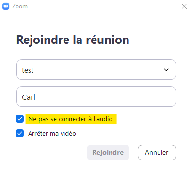 Option 1 : Ne pas joindre l’audio de l’ordinateur lors de la connexion à la réunion (RECOMMANDÉ)