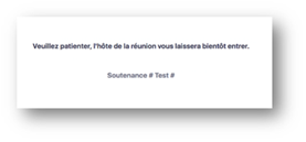Un message d’attente semblable à celui-ci s’affiche sur l’interface Zoom des membres du public et de la soutenant.e.