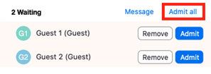 Une fois les délibérations du jury terminées, l’animateur.trice clique sur « Admettre tous », c’est à ce moment que tous les participant.e.s de la salle d’attente se retrouveront dans la salle principale pour assister à la communication de la décision du jury.