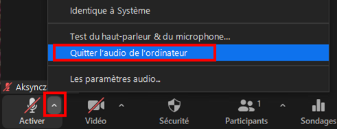 Il y a plusieurs endroits où il est possible de refuser ou de quitter l’audio de l’ordinateur lorsque vous rejoignez une réunion.