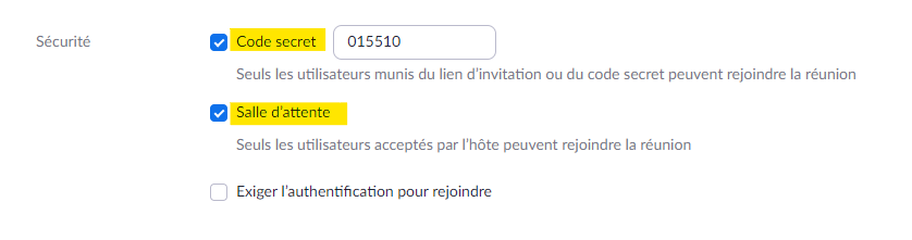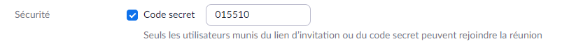 Il est recommandé d’exiger la saisie d’un mot de passe aux participant.e.s qui souhaitent se joindre à la soutenance. En plus de permettre un meilleur contrôle des personnes admises à la soutenance, cette fonctionnalité bonifie le niveau de sécurité technologique de l’événement. Le mot de passe est automatiquement ajouté et codé dans l’URL de la réunion.