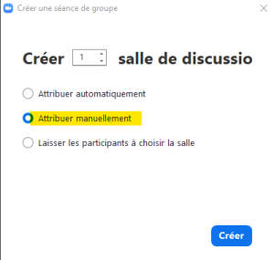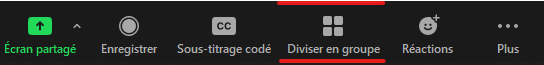 Les animateurs.trices peuvent créer un nouveau groupe et y assigner manuellement les membres du jury avec l’icône « Diviser en groupe » dans la barre des tâches.