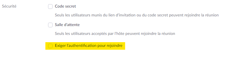 Vous retrouverez dans cette section comment activer l'authentification obligatoire des participants dans vos réunions.